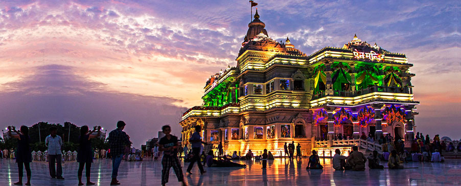 The Jaipur Temple which was built by Sawai Madhav Singh, the Maharaja of Jaipur in 1917, is a richly embellished and opulent temple. The fine hand - carved sandstone is of unparalleled workmanship. The temple is dedicated to Shri Radha-Madhav.